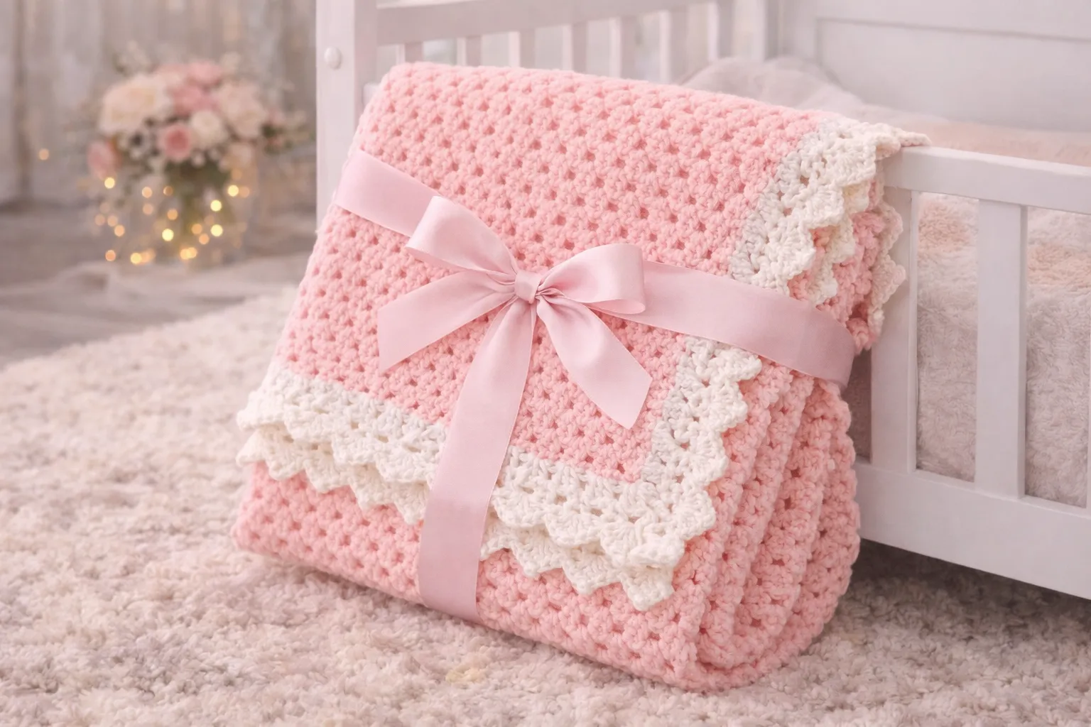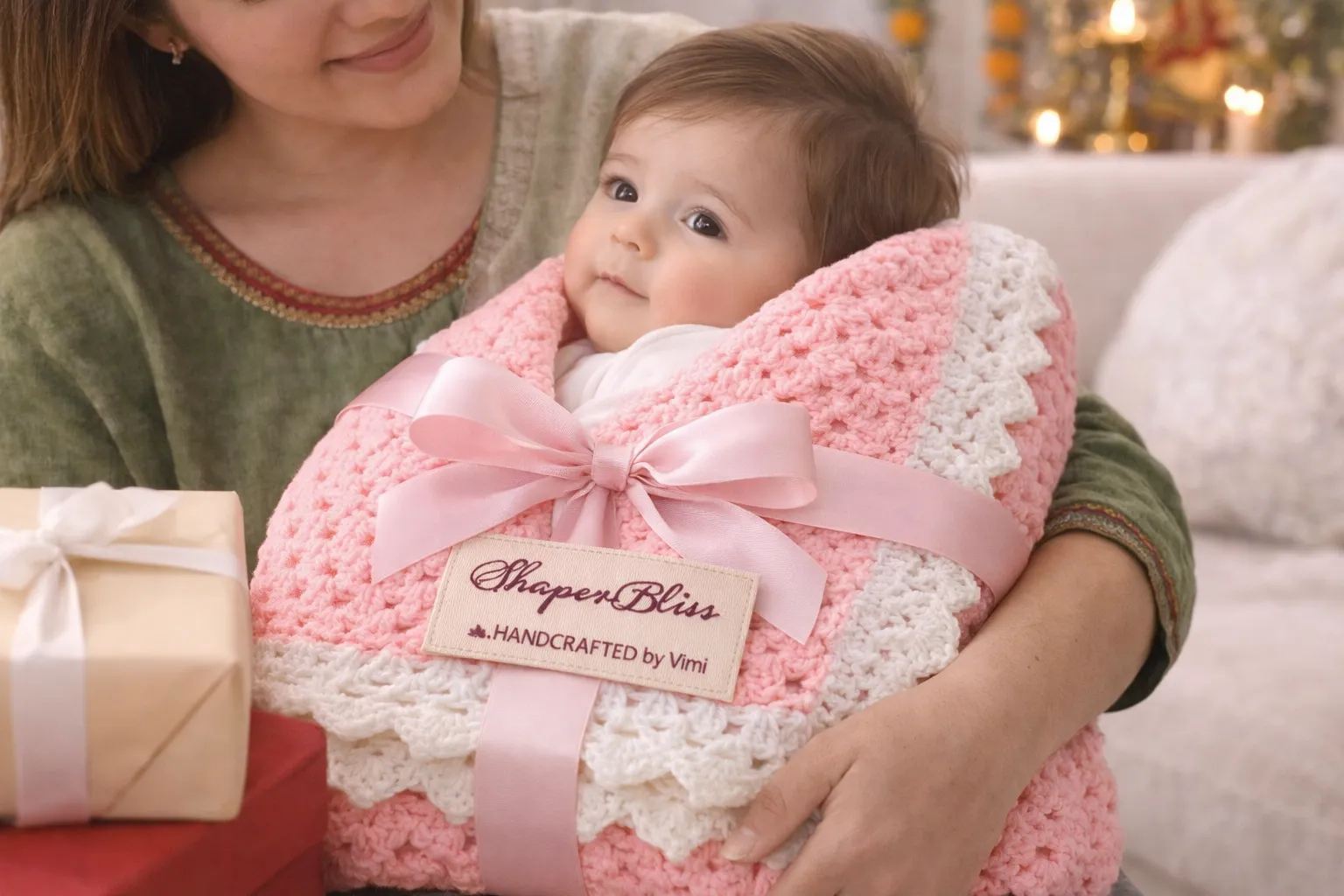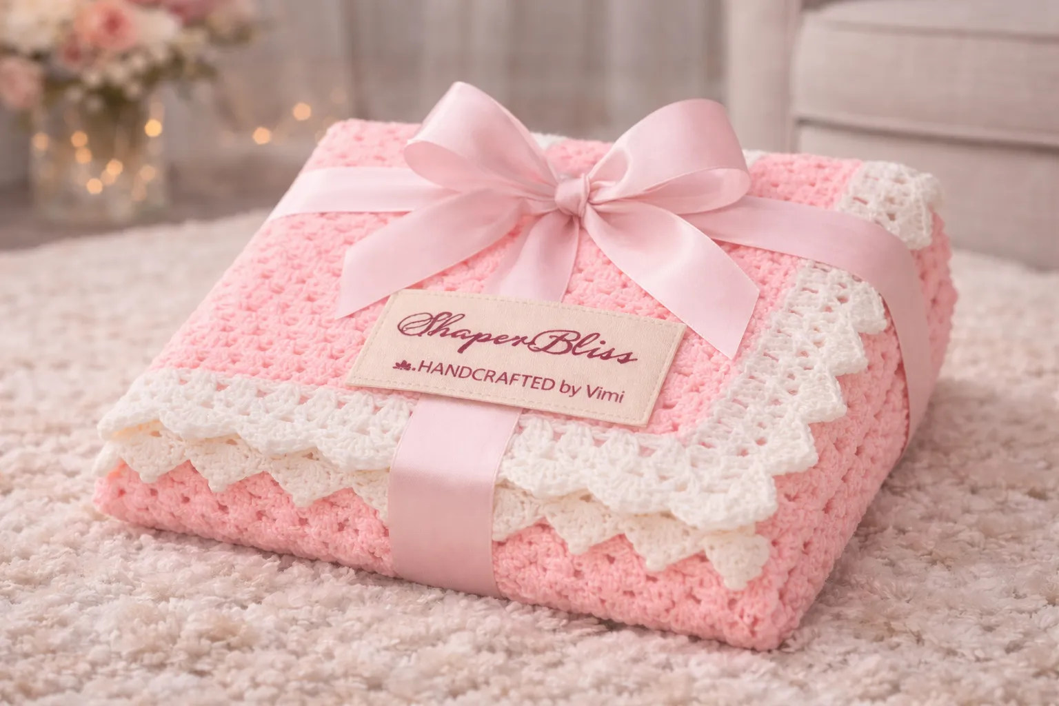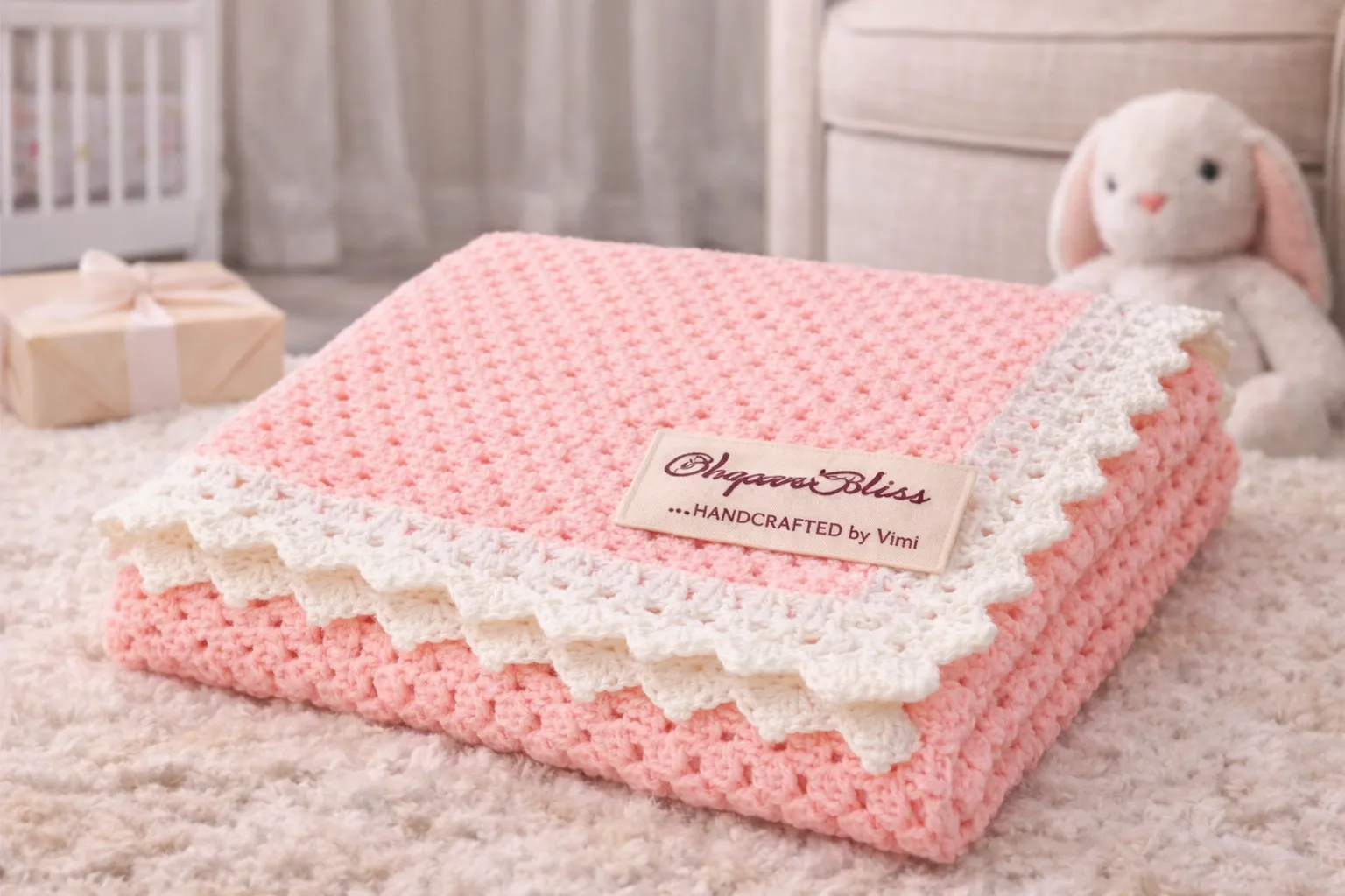 Handcrafted Baby Blanket with Ribbon Gift Wrap